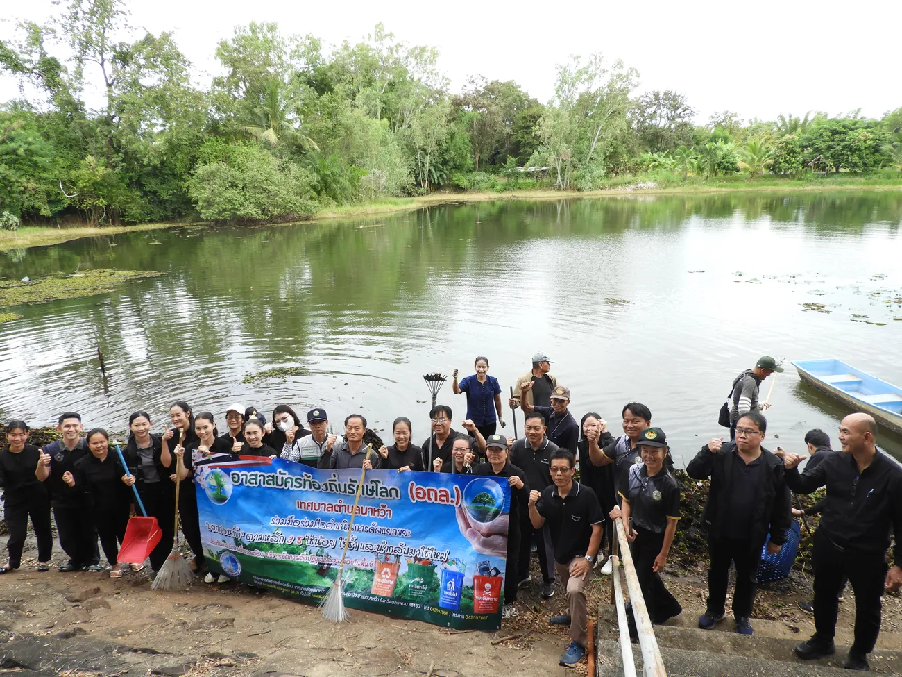 กลุ่มอาสาสมัครท้องถิ่นรักษ์โลก (อถล.) ร่วมมือกับเทศบาลตำบลนาหว้า และประชาชนในพื้นที่ ร่วมกิจกรรมคลองสวยน้ำใส