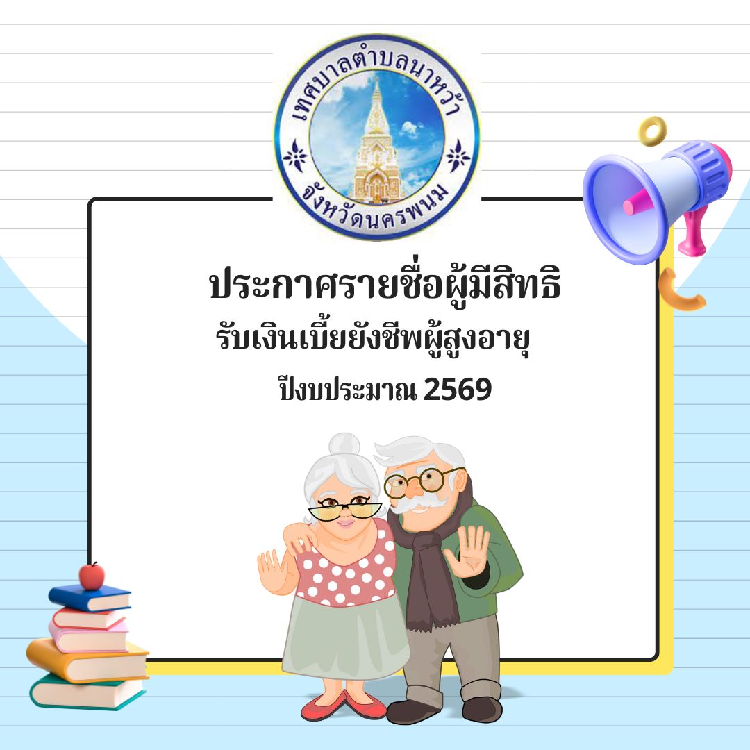 ประกาศเทศบาลตำบลนาหว้า เรื่อง รายชื่อผู้มีสิทธิรับเงินเบี้ยยังชีพผู้สูงอายุ ประจำปีงบประมาณ พ.ศ.2569